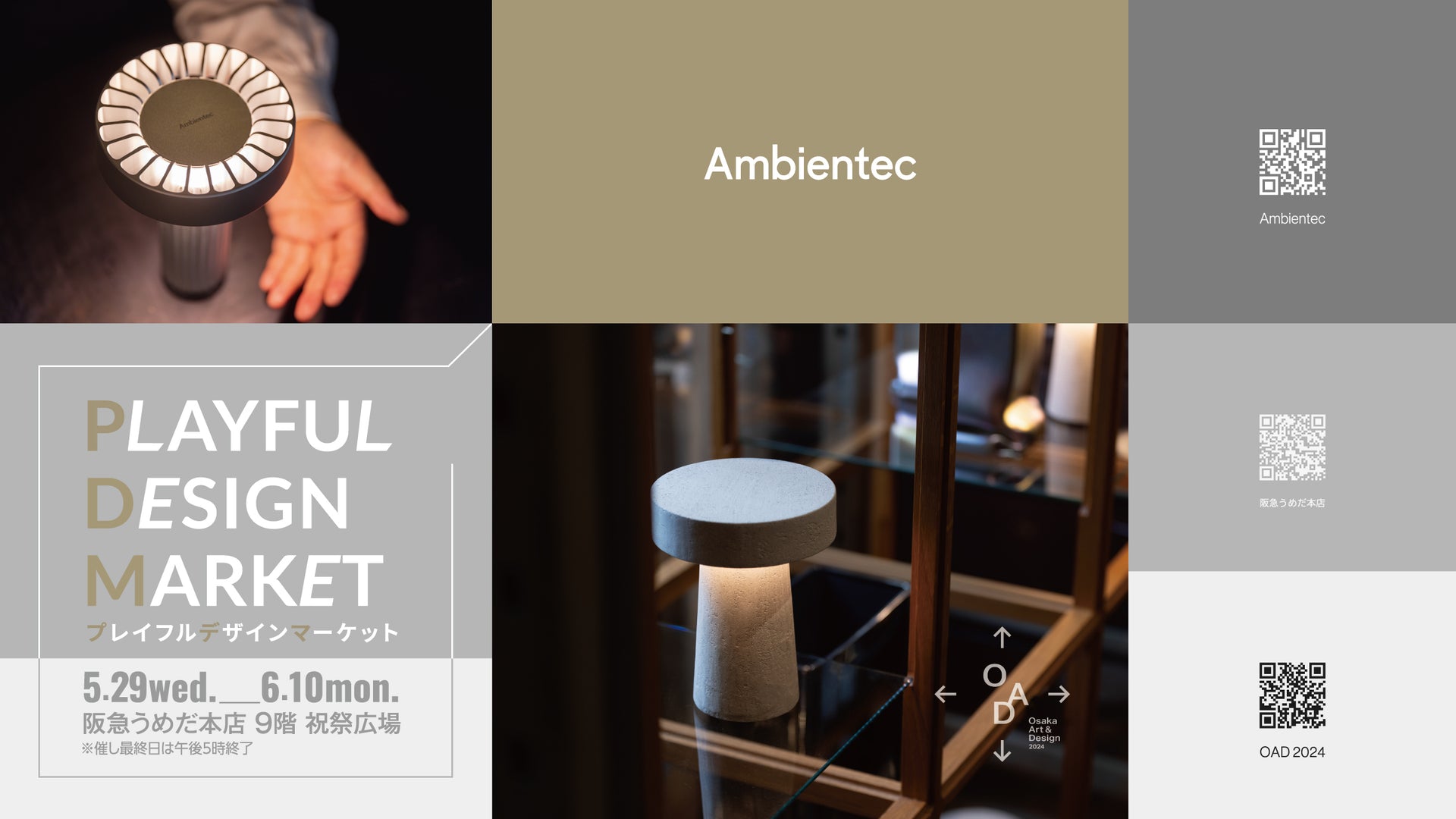 Ambientecは2024年5月29日水)から始まるOsaka Art & Design 2024の一環として阪急うめだ本店で開催される「PLAYFUL DESIGNMARKET(プレイフルデザインマーケット」に出展し、新作「FOTICA(フォティカ)」と「Remli(レムリ)」を国内初お披露目します。