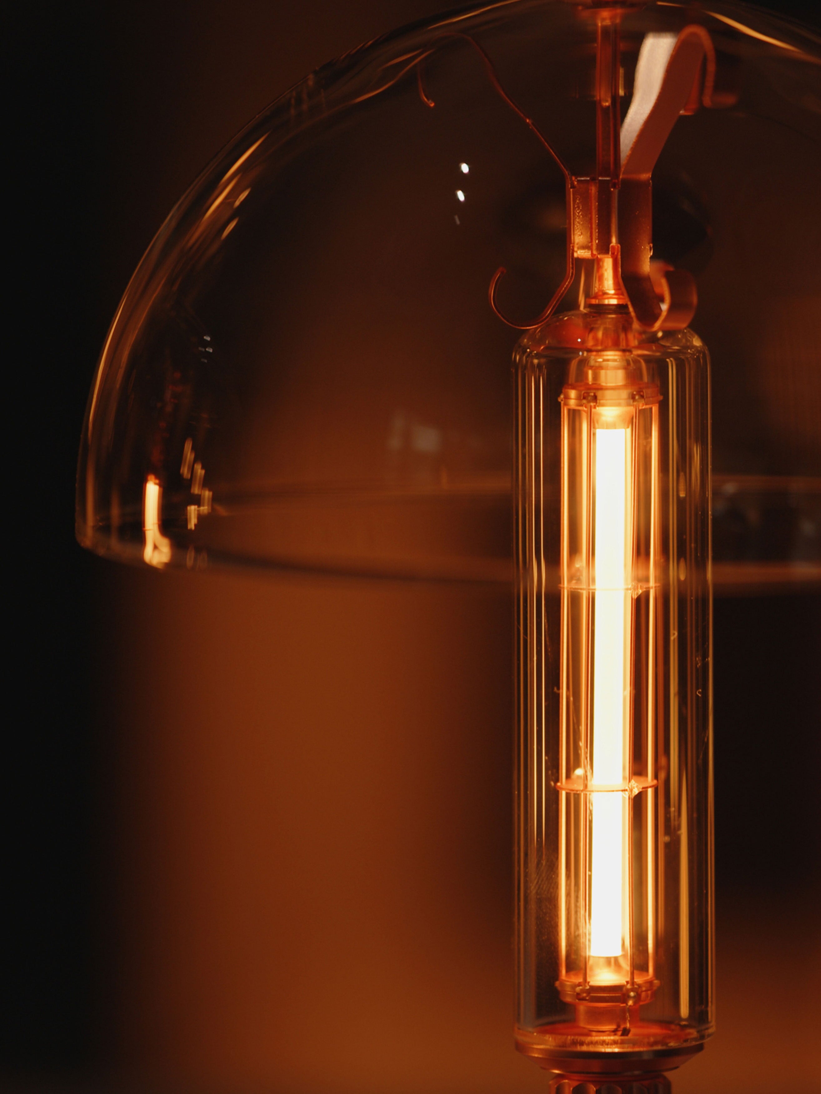 歴史的な教会や施設といった建築や、そこにある階段や柱、窓のディテールに見られる装飾的な要素からインスピレーションを受けたモデル。半球型のプリミティブなガラスシェードは、光源からの光と、周囲の空間からの光を受けて、静かで温かみのある光のシルエットを浮かび上がらせます。ガラスシェードを外してのご使用も可能です。