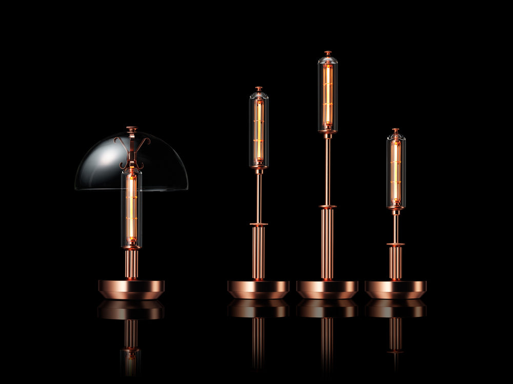 歴史的な教会や施設といった建築や、そこにある階段や柱、窓のディテールに見られる装飾的な要素からインスピレーションを受けたモデル。半球型のプリミティブなガラスシェードは、光源からの光と、周囲の空間からの光を受けて、静かで温かみのある光のシルエットを浮かび上がらせます。